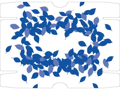 リサイクルペーパーを使用したパッケージ。 よく見ると、葉っぱの中に鳥が一羽隠れているというデザイン。